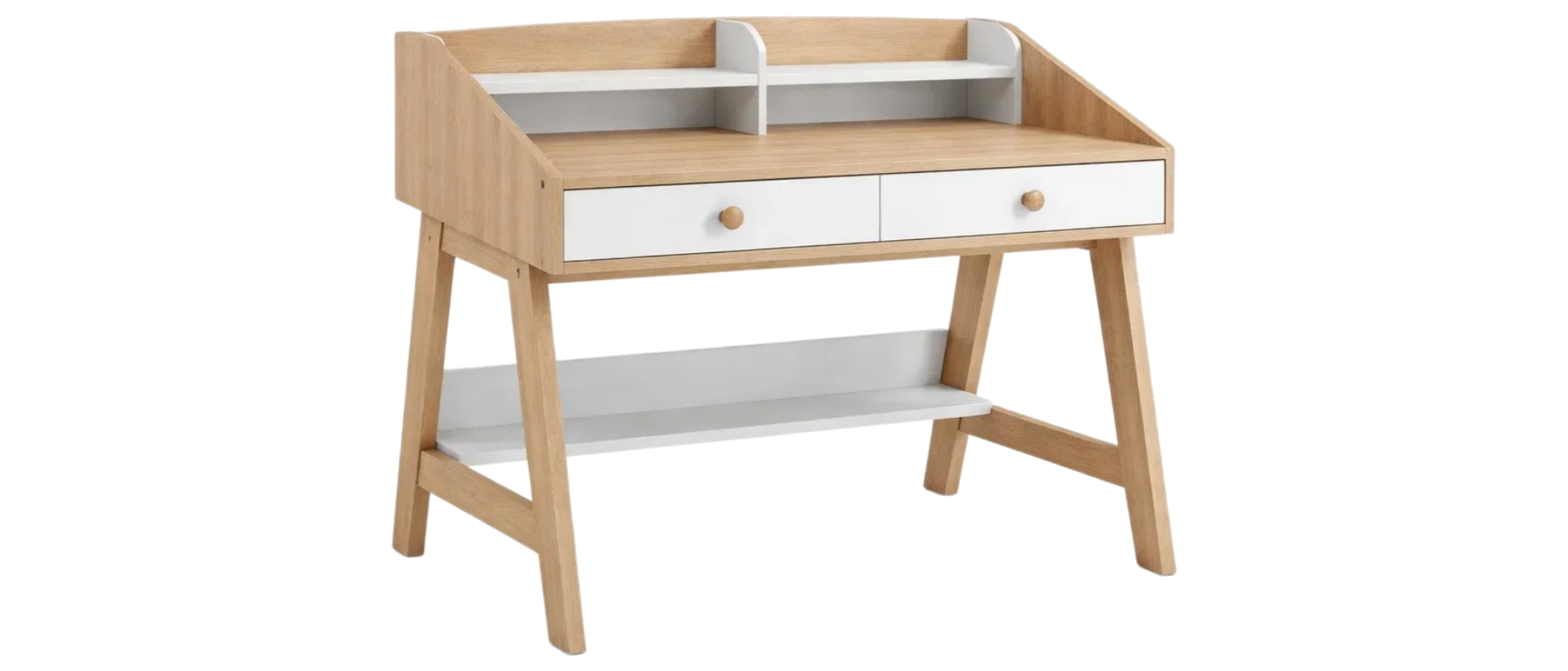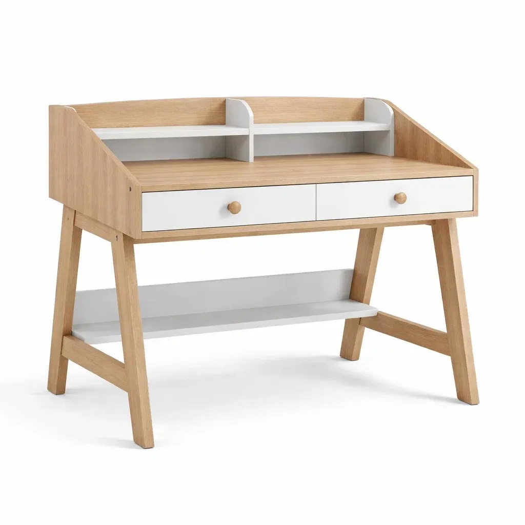 Scrivania in MDF e Legno di Pino con Cassetti e Ripiani